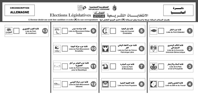 Découvrez votre bulletin de vote, selon votre circonscription : Allemagne 25 octobre 2014 Par : Rédaction Le bulletin de vote des listes électorales de la circonscription de Allemagne, 13 listes.