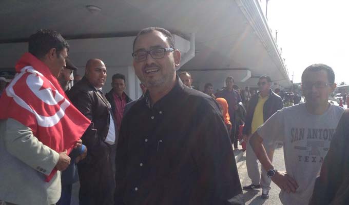Hachemi El Hamdi fondateur d’Al Aridha Echaabia en 2011 et actuel dirigeant du parti Tayar El Mahaba a été accueilli, aujourd’hui samedi 1er novembre 2014, à l’aéroport Tunis-Carthage par plusieurs dizaines de personnes.