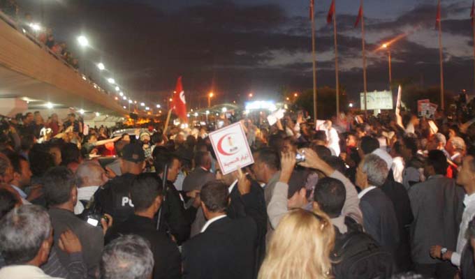 Sous haute protection policière, Hachemi EL Hamdi a dû être évacué sous escorte, en direction de Sidi Bouzid.