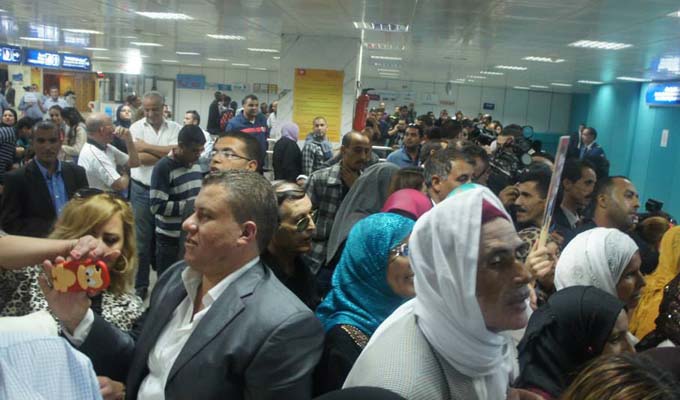 Hachemi El Hamdi fondateur d’Al Aridha Echaabia en 2011 et actuel dirigeant du parti Tayar El Mahaba a été accueilli, aujourd’hui samedi 1er novembre 2014, à l’aéroport Tunis-Carthage par plusieurs dizaines de personnes.