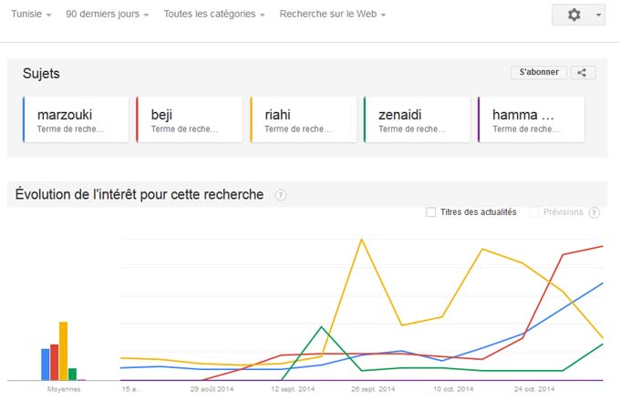 Les finalistes du deuxième tour semblent identifiés, parmi les poursuivants, les choses bougent et rien ne semble assuré pour aucun de ces candidats, et à défaut de sondages, on se rabat sur les outils de mesures de type Google Trends (tendances des recherches), pour surveiller l’évolution de l’intérêt des internautes pour les candidats à la présidentielle.