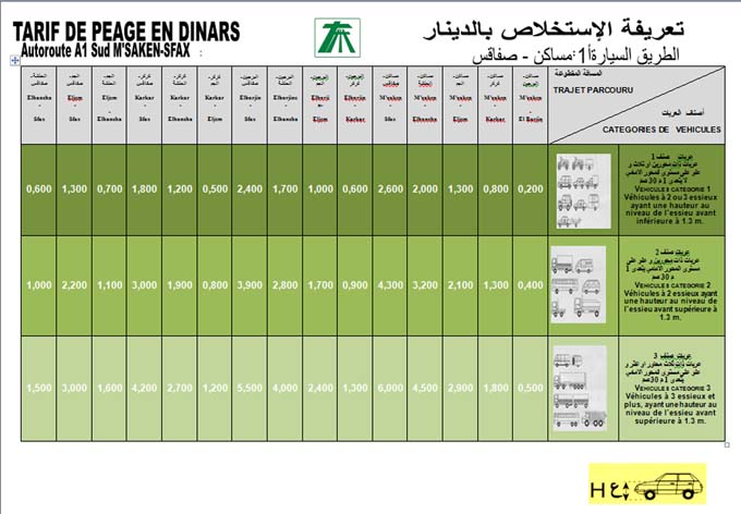 Sur proposition du ministre de l’équipement, de l’aménagement du territoire et du développement durable, le chef du gouvernement, Mehdi Jomâa, a décrété une nouvelle tarification relative au droit de péage sur les autoroutes: