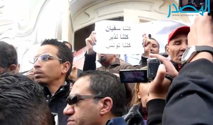Sofiène Chourabi et Nadhir Ktari : Manif de soutien (Vidéo) 9 janvier 2015 Par : Rédaction La manifestation de soutien aux journalistes de First TV détenus en Libye, Sofiène Chourabi et Nadhir Ktari.