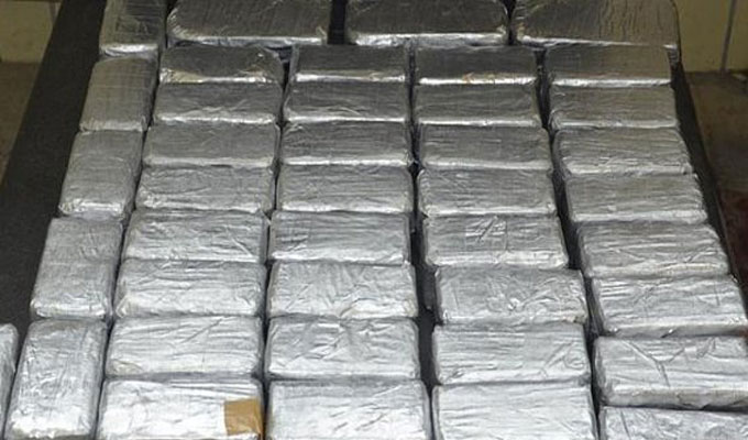 La drogue qui était transportée par un citoyen à bord d’un poids-lourd, était dissimulée, sous forme de plaques (100 plaques), dans un compartiment du moteur. Le conducteur du véhicule a été arrêté.