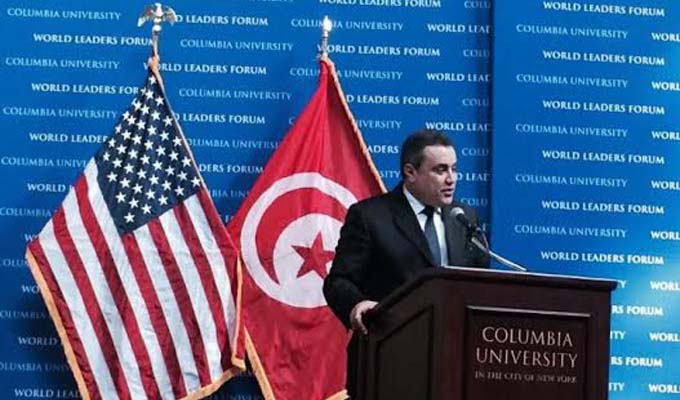 Sur invitation de Lee Bollinger, président de Columbia University (New York), Mehdi Jomaa a donné mardi 24 février 2015 une conférence dans le cadre du Forum Mondial des Leaders. Cette conférence, intitulée «Leadership en Tunisie, la start-up de démocratie», a été suivie par plus de 200 personnes qui ont bradé un froid glacial (-16 degrés) pour se rendre à cet évènement.