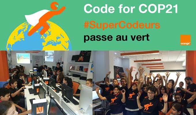 Par ailleurs et afin que ces jeunes puissent eux aussi s’exprimer et s’engager pour des causes qui les concernent directement, Orange leur donne la parole en lançant le Code for COP21 du 17 octobre au 29 novembre qui a pour thématique «codons pour la planète».