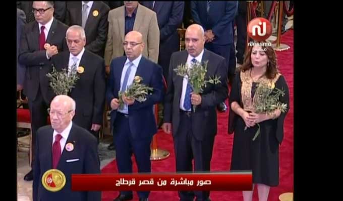 La cérémonie s’est déroulée en présence du Chef du gouvernement, du président de l’Assemblée des représentants du peuple, des membres du gouvernement et du Parlement et des représentants de la société civile, des instances nationales et des missions diplomatiques en Tunisie, outre des représentants de partis politiques, des figures médiatiques et des personnalités nationales.