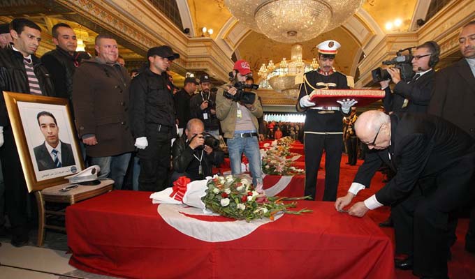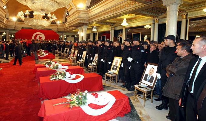 En images, la cérémonie d’hommage aux martyrs de la garde présidentielle morts dans l’attentat qui a ciblé le bus des hommes de sécurité et qui a fait 12 morts et une vingtaine de blessés, dont 4 civils.
