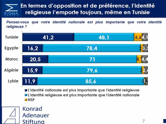 Les Tunisiens, champions du nationalisme en Afrique du Nord 11 mai 2016 Par : Rédaction Les Tunisiens, en comparaison avec les autres populations d’Afrique du Nord, s’identifient beaucoup plus à leur identité nationale. 41,2% des Tunisiens considèrent que leur identité nationale est importante, contre 20,5% au Maroc et 11,9% en Libye.