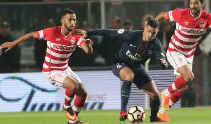 L’équipe tunisienne tentait d’inquiéter la défense parisienne mais peinait à trouver la brèche dans un dispositif bien verouillé du PSG qui monopolisait le ballon et gérait sans trop de difficultés le match.