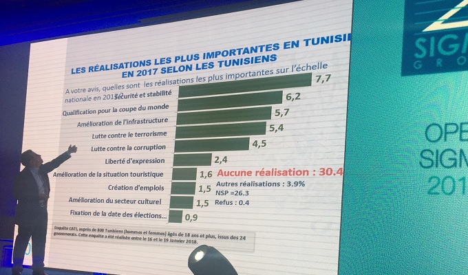 Présenté à l’occasion du rendez-vous annuel de la communication Open Sigma, le sondage sur la perception des tunisiens de l’année 2017 semble sans appel, c’est la grande déception pour la majorité des sondés affirme Hassan Zargouni lors de cette journée.