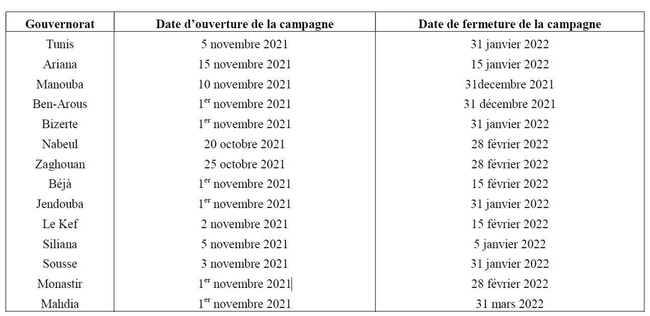 Arrêté du ministre de l’agriculture, des ressources hydrauliques et de la pêche maritime et de la ministre de l’industrie, des mines et de l’énergie du 24 novembre 2021, fixant les dates d’ouverture et de fermeture de la campagne de cueillette et de transformation des olives 2021/2022.