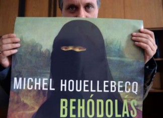 Une Joconde portant un niqab (voile intégral) figure en couverture de l'édition hongroise de Soumission, le dernier roman de Michel Houellebecq !