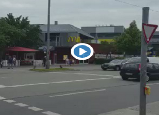 Dans une vidéo postée sur Twitter, on peut voir un homme tirer sur des gens près du restaurant MacDonalds, vraisemblablement un des trois tireurs...