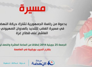 Dans un communiqué rendu public, mercredi 23 juillet 2014, le mouvement Ennahdha a appelé, à l'occasion de la fête de la République, les forces...