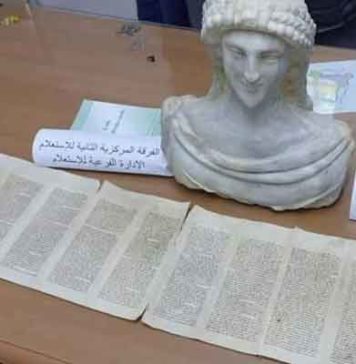 : Saisie d’un manuscrit hébreu et d’une tête antique