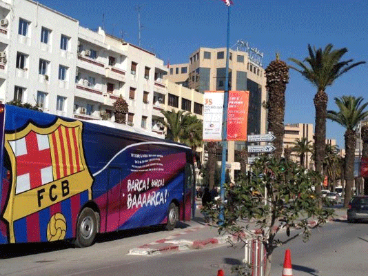 Le bus officiel du FC Barcelona qui circule à Tunis suscite l’interrogation de nombreux Tunisiens…