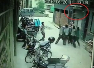 Une petite fille de deux ans a été sauvée in extrémiste d'une incroyable chute du cinquième étage, dans la province du Zhejiang, en Chine, jeudi 20 juin 2013.