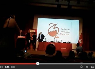 Une activiste de FEMEN Canada perturbe le discours de Hamadi Jebali, pour réclamer la libération d'Amina.