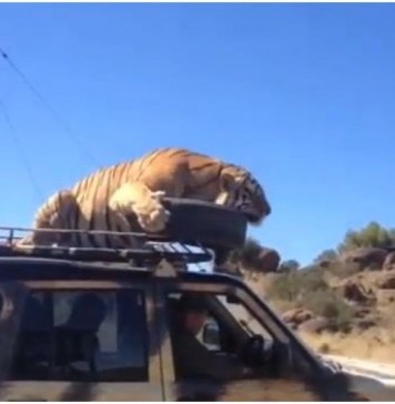 : Un tigre s’endort sur le toit d’une voiture !